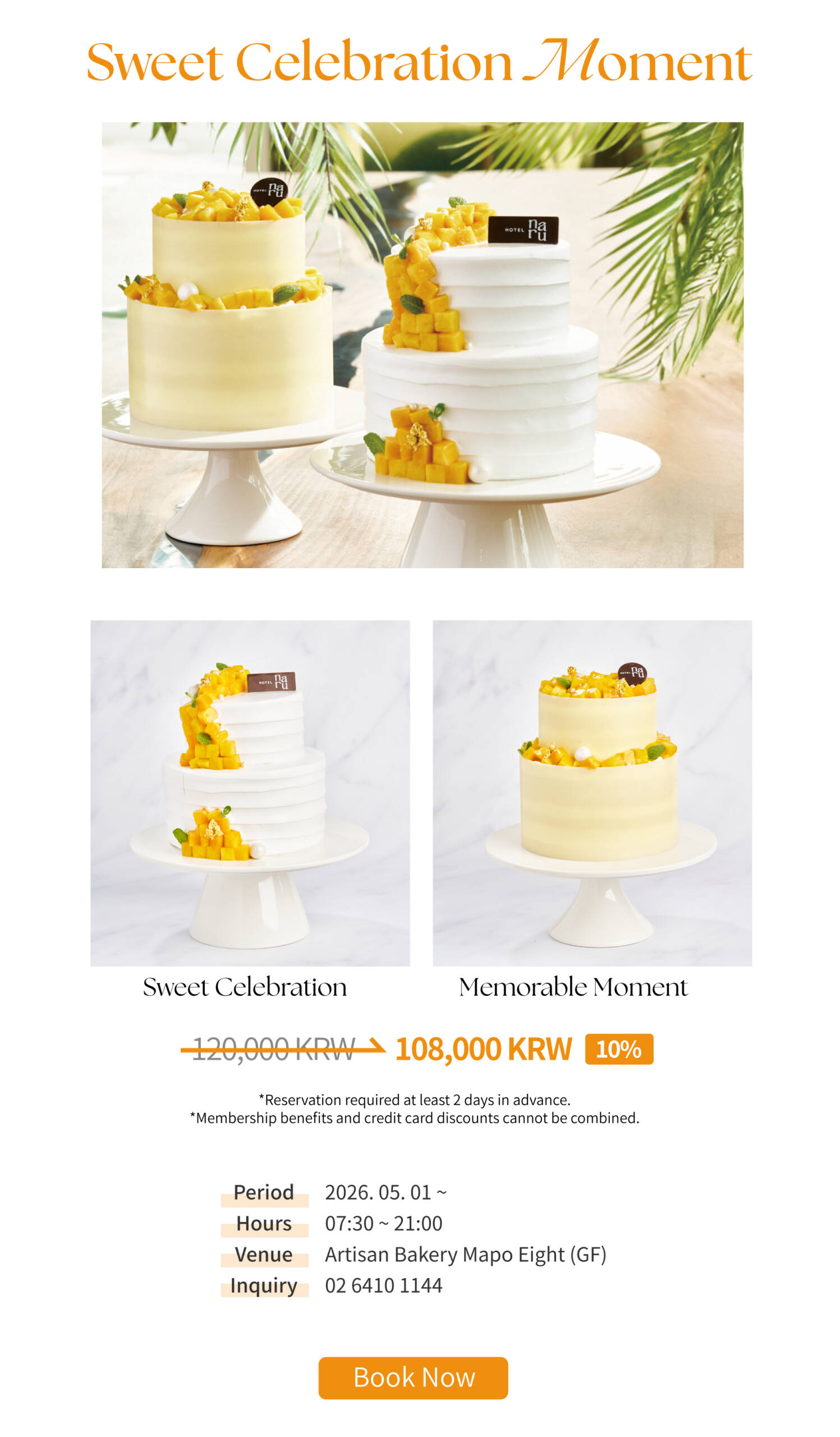 • Menu: Mango afternoon tea desserts, savory selections, rosé tteokbokki, and two cups of coffee or tea