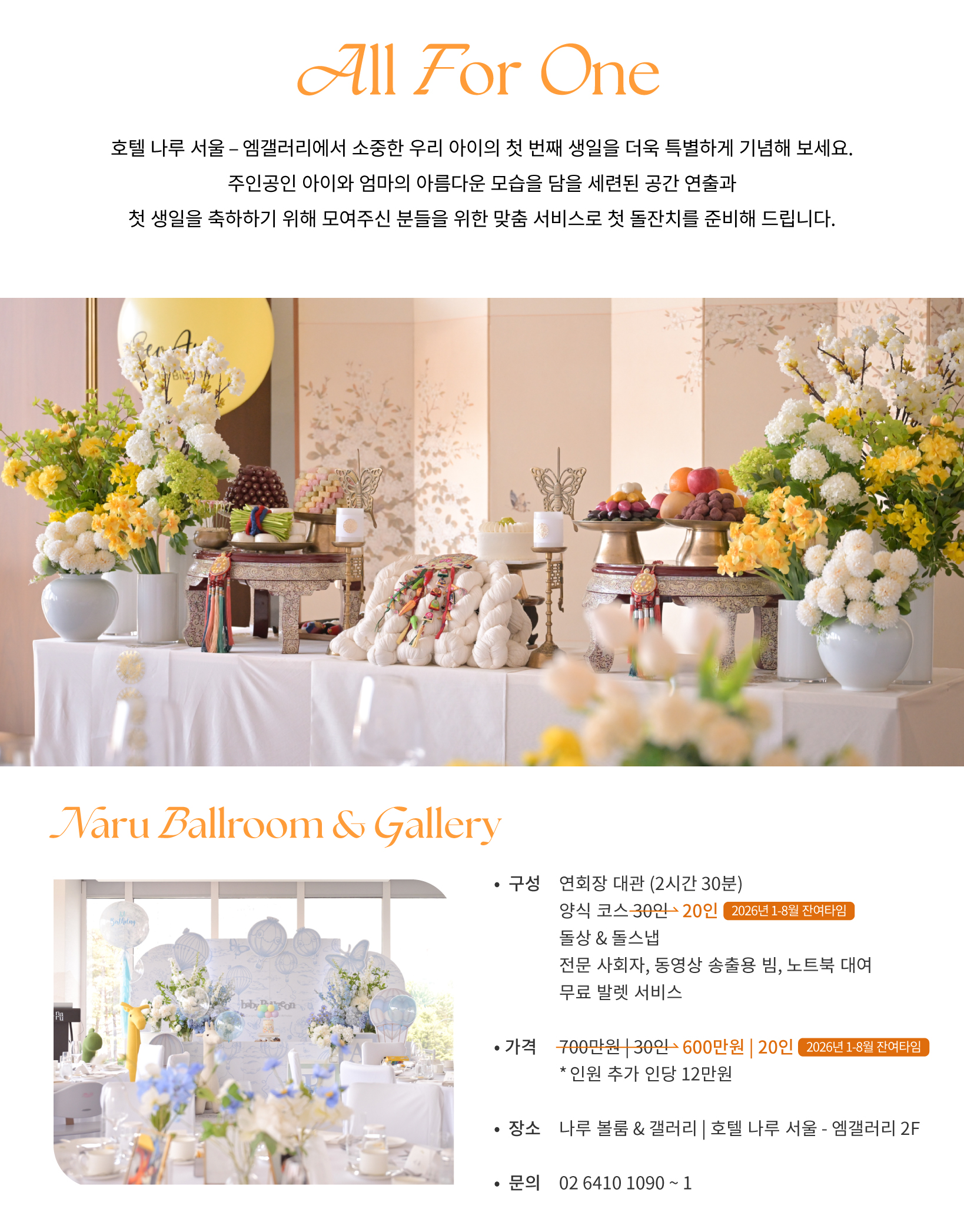 호텔 나루 서울 – 엠갤러리에서 소중한 우리 아이의 첫 번째 생일을 더욱 특별하게 기념해 보세요.