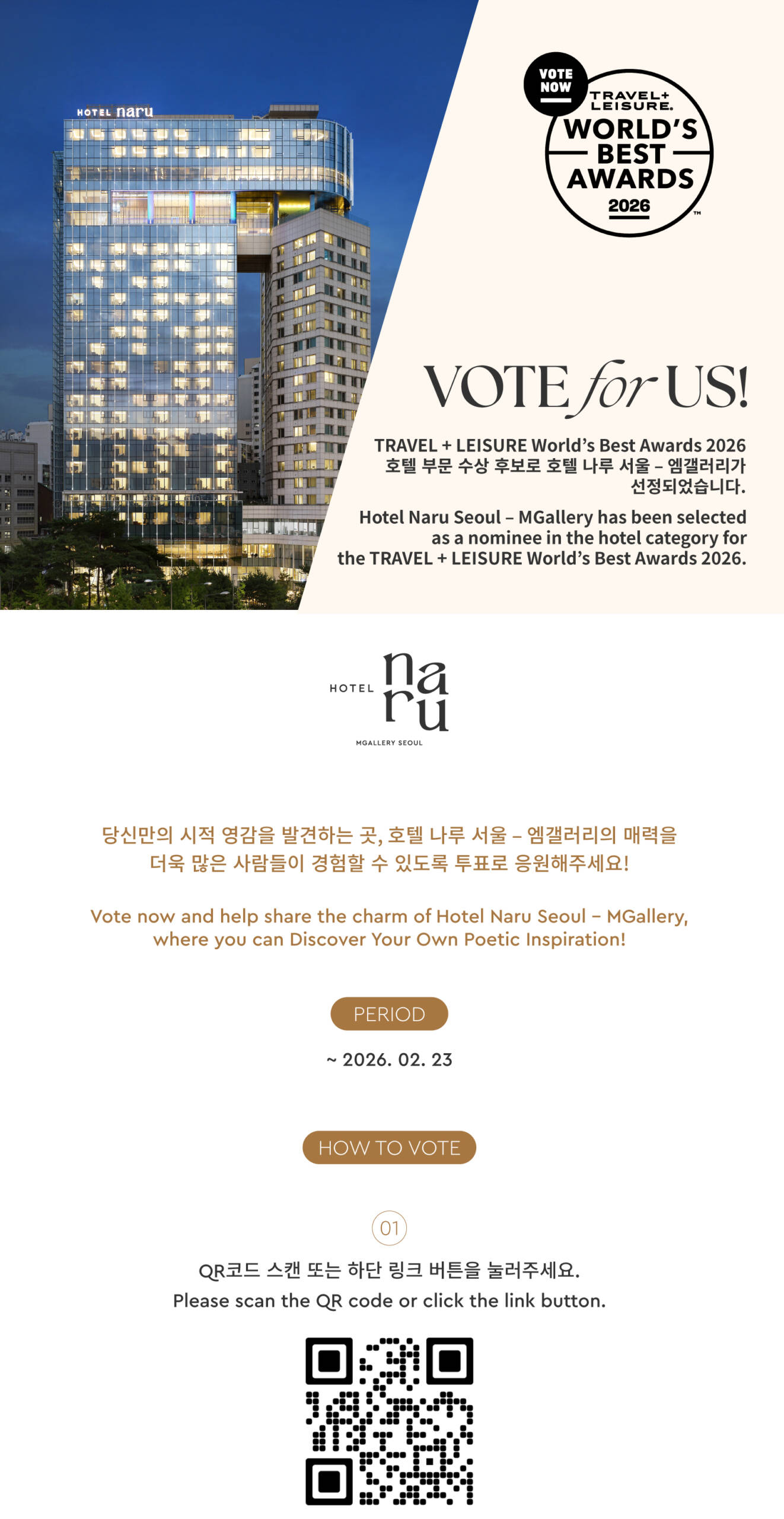 보내주신 성원에 감사 드리며 앞으로도 나만의 시적 영감을 발견하는 호텔 나루 서울만의 특별한 경험을 선사하도록 노력하겠습니다.